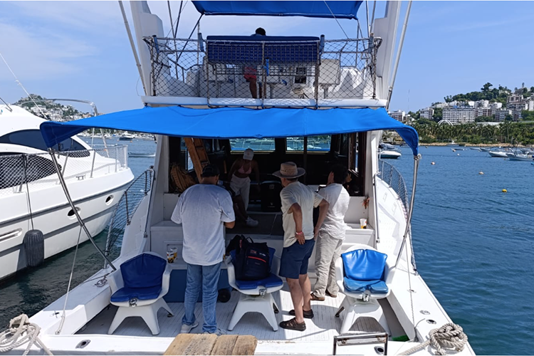 Incluye: Capitán y marinero, chalecos salvavidas, 2 snorkel, tapete, caña de pesca y sonido Bluetooth. NO incluye bebidas.