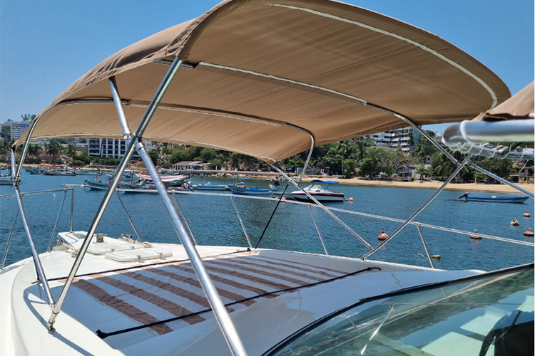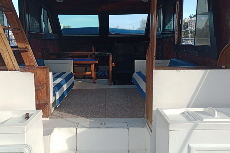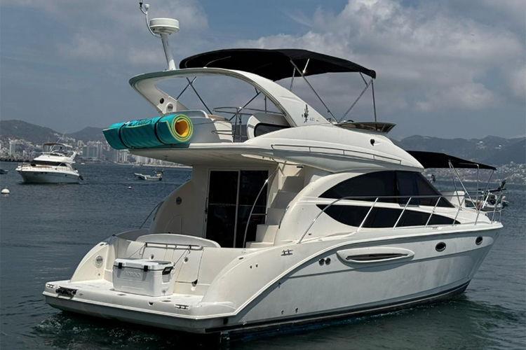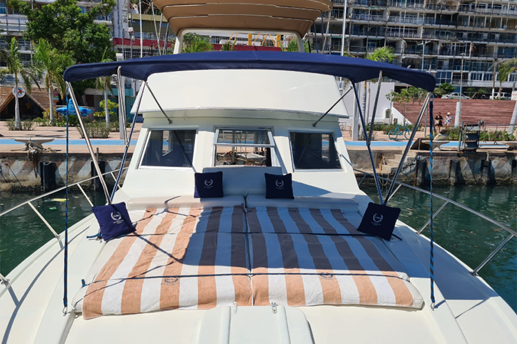 Incluye: Capitán, marinero y 12 aguas, 12 beer. Cuenta con flybridge, 2 camarotes, sala, baño y cocina. SIN Aire Acondicionado.