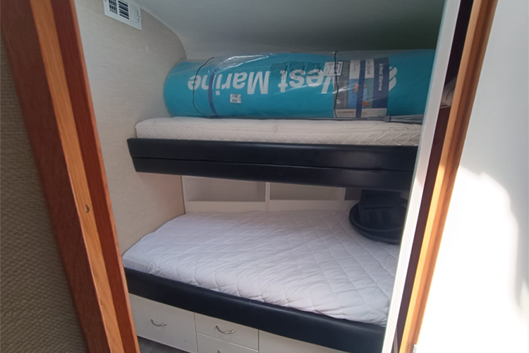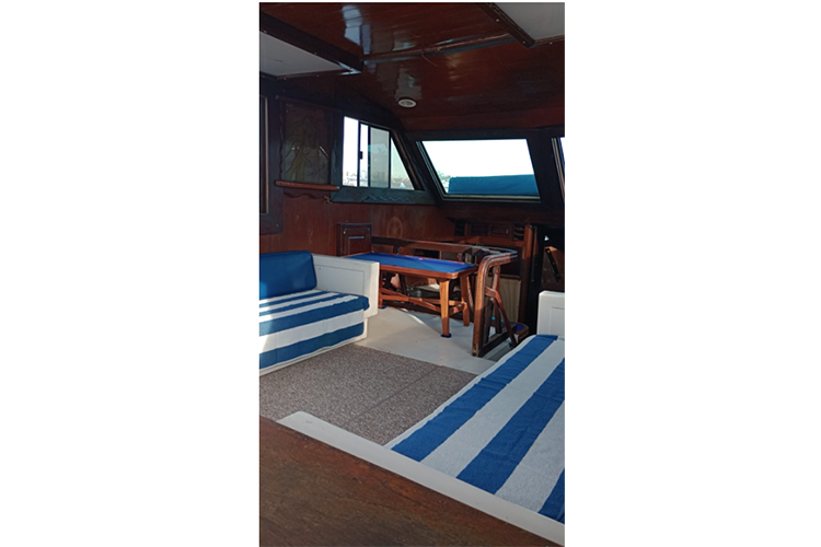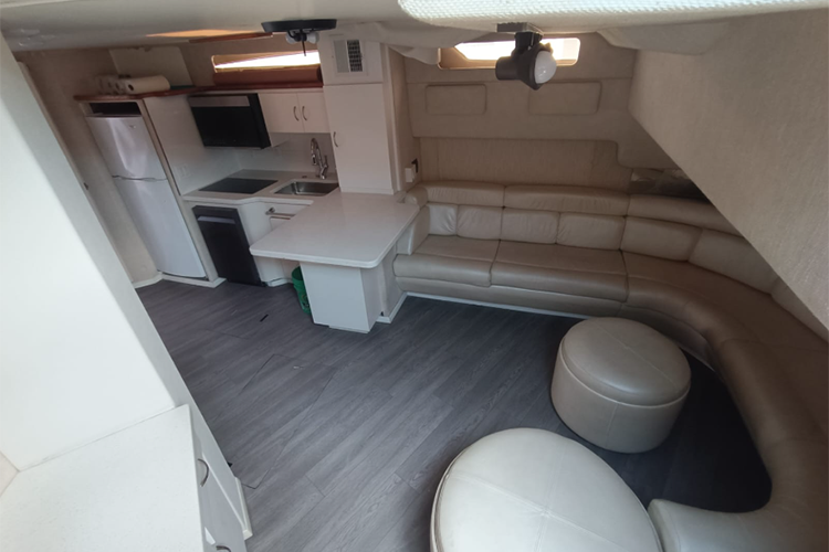 La embarcación está equipada con 2 baños, sonido Bluetooth, sala interior y exterior.