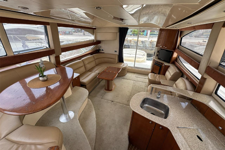 Incluye: Capitán, marinero, 12 aguas, 12 beer y hielo. La embarcación cuenta con flybridge, 2 camarotes, sala, baño, comedor, cocina y AIRE ACONDICIONADO.