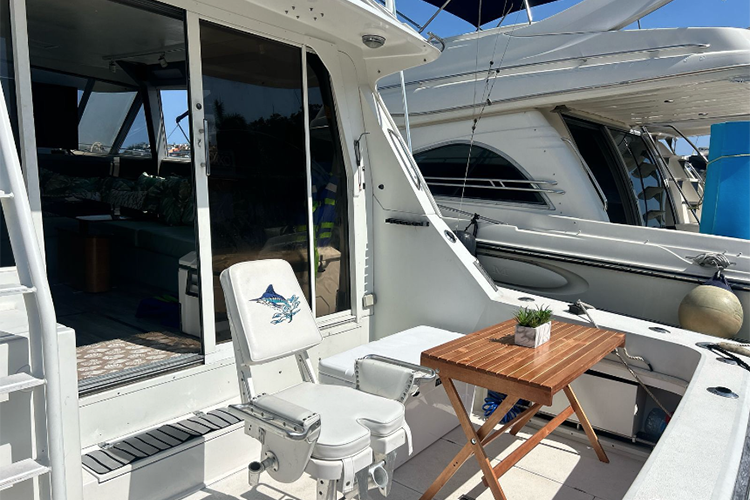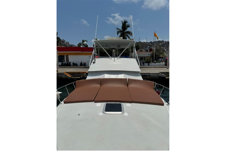 Incluye: Capitán y marinero. La embarcación cuenta con dos recámaras, tres baños, dos comedores, cocina, refrigerador, micro, parrilla, sala, flybridge, chalecos, flotis, aros, salvavidas, equipo, de pesca y toallas. Con AIRE ACONDICIONADO.